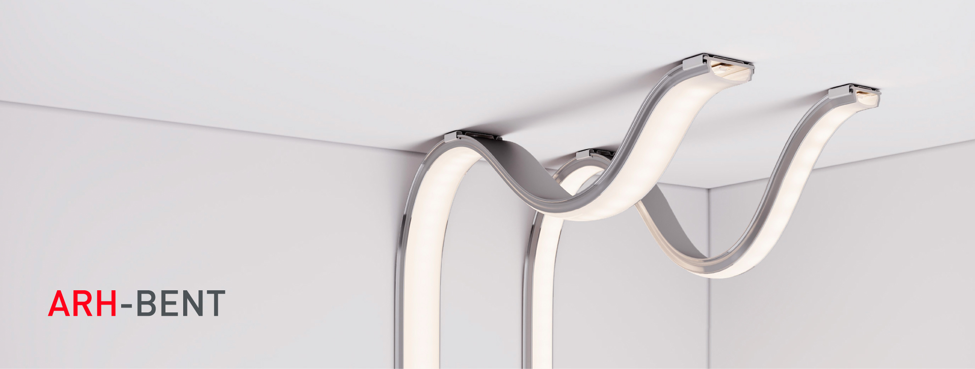 Профили серии ARH BENT легко гнутся руками в поперечной плоскости, благодаря чему являются идеальным интерьерным решением для подсветки изогнутых поверхностей и создания декоративных фигурных светильников.