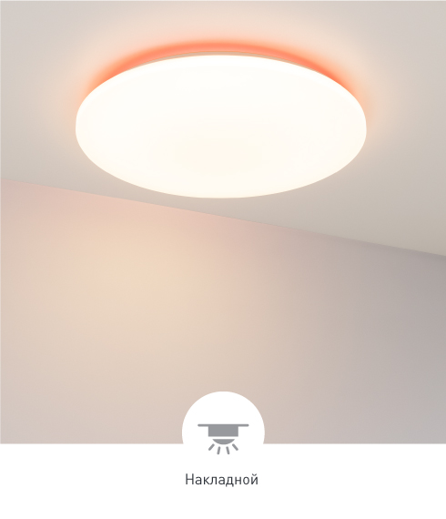 Стильный дизайн Современный минималистичный светильник белого цвета мощностью 50 Вт и диаметром 570 мм. Индекс цветопередачи CRI>90 обеспечивает естественную передачу оттенков интерьера. Степень пылевлагозащиты IP20. Гарантийный срок — 3 года.