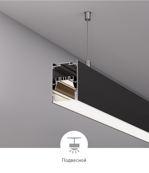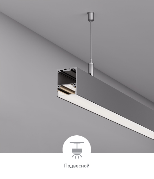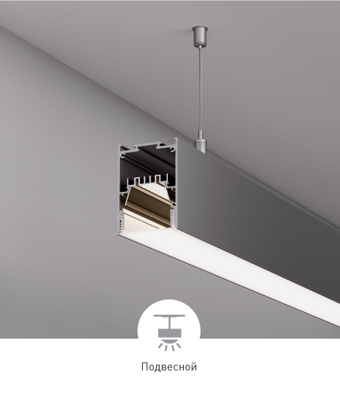 Способ монтажа Профили подходят для изготовления подвесных линейных светильников. Модель IP-LINE-4050 также можно монтировать на стену накладным способом.