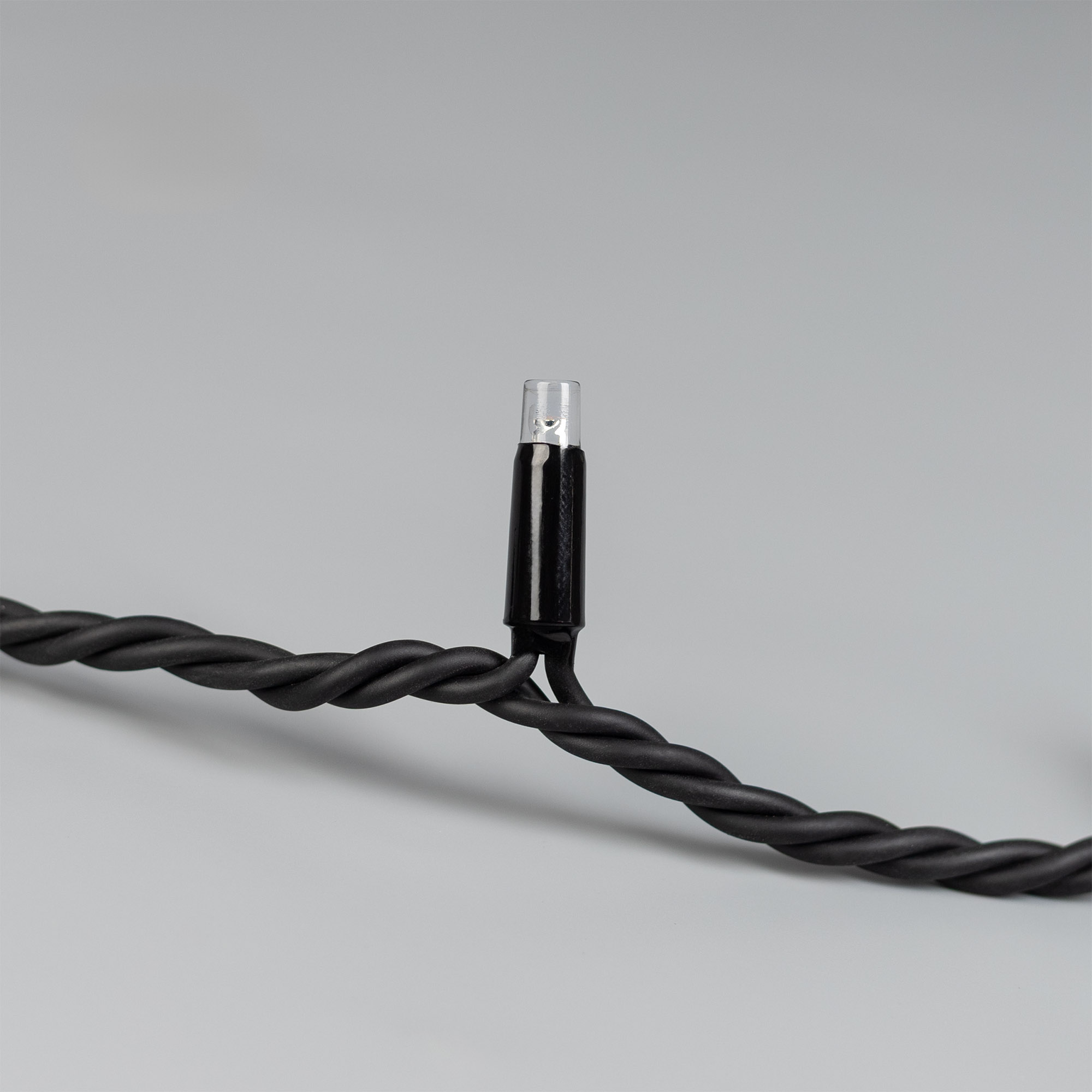 Универсальная светодиодная гирлянда "НИТЬ" серии Pro, предназначенная для декорирования и создания праздничного настроения как внутри помещений, так и снаружи (степень пылевлагозащиты IP65 позволяет размещать гирлянду на улице под навесом). Имея длину 10000 мм, она может использоваться для оформления средних и больших площадей. Универсальные соединительные разъемы позволяют наращивать длину до 50 м без использования дополнительных аксессуаров. Прозрачная вогнутая линза и эффект непрерывного свечения обеспечивают яркое, равномерное освещение, выделяя украшаемые объекты. Теплый белый свет, в сочетании с холодным белым, помогает создать необходимую атмосферу для декоративного объекта. Провод изготовлен из каучука и окрашен в чёрный цвет. Аксессуары для подключения гирлянды к сети и управления приобретаются отдельно.