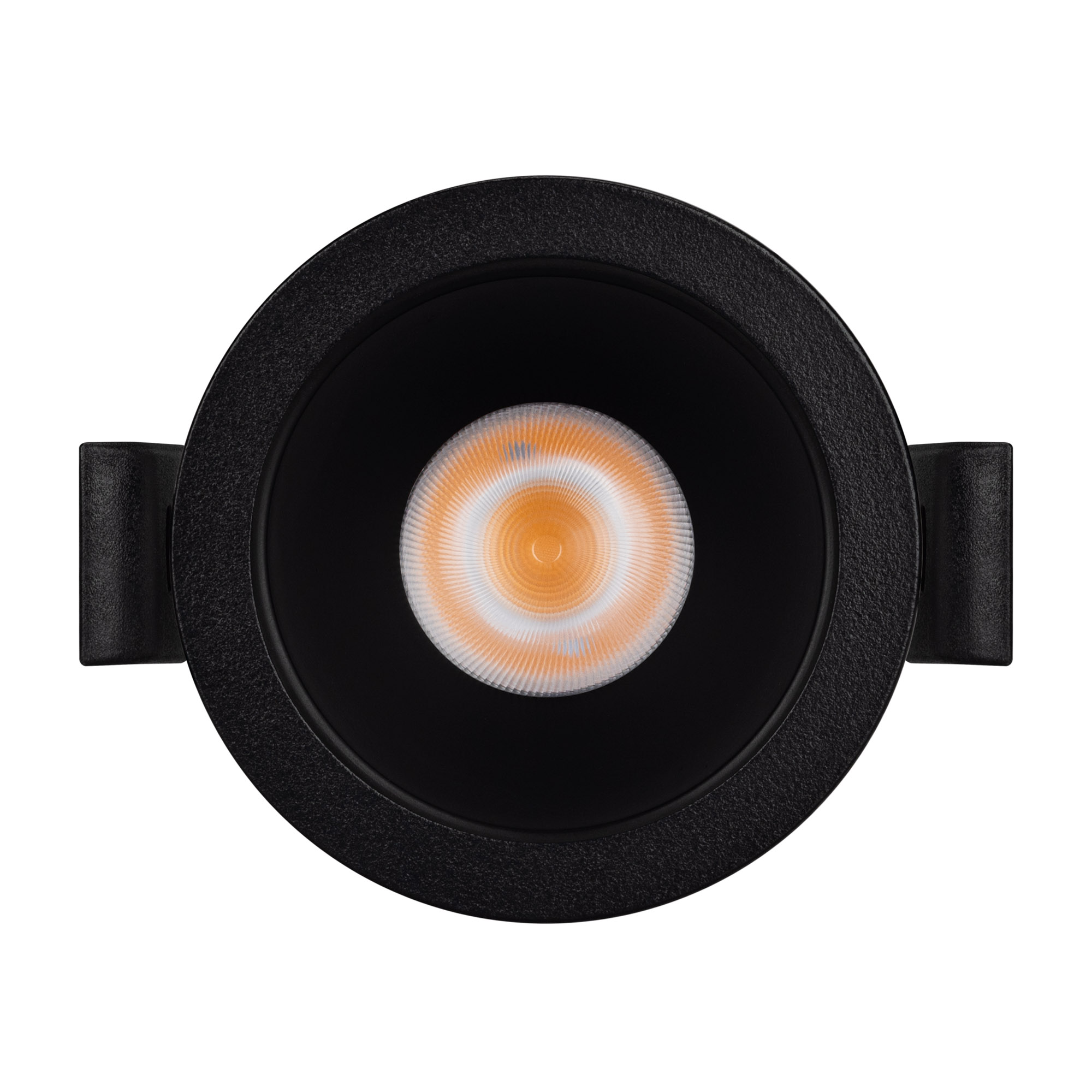 Встраиваемый светильник даунлайт. Мощность 10 Вт, св. поток 787 лм, 74 лм/Вт, теплый 3000 K, CRI>90, UGR<16, угол 35°, напряжение питания 230 В. Черный круглый корпус из алюминия, черный МАТОВЫЙ отражатель из PMMA, степень защиты IP20. Размер: диаметр 58 мм, высота 68 мм. Монтаж встраиваемый, установочное отверстие: диаметр 52 мм. Драйвер 20-40 В, 250 мА, пульсация <2%.