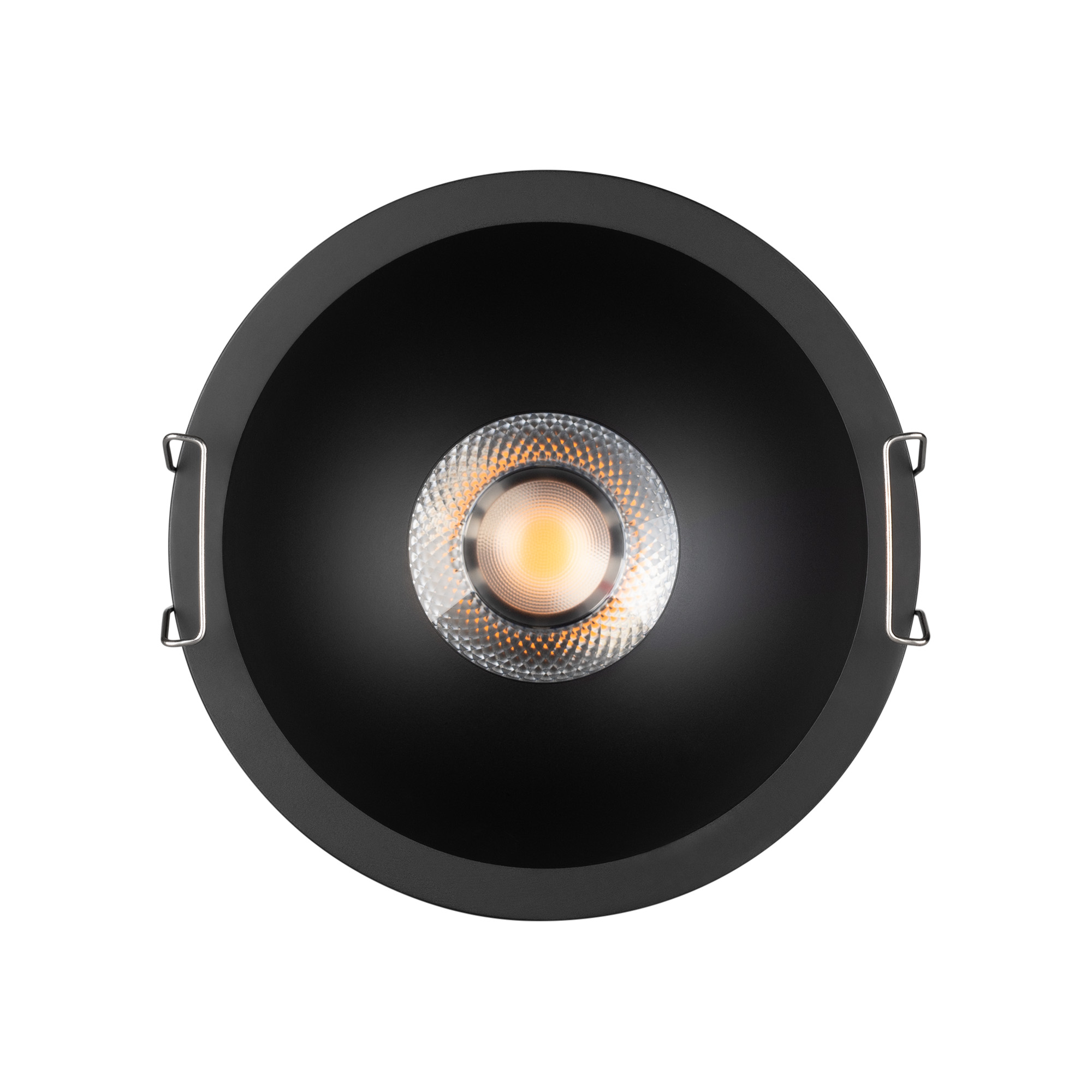 Встраиваемый светильник даунлайт. Мощность 20 Вт, св. поток 1810 лм, 90 лм/Вт, тёплый 3000 K, CRI>90, угол 50°, напряжение питания 230 В. Чёрный круглый корпус из алюминия, степень защиты IP20. Размер: диаметр 123 мм, высота 68 мм. Монтаж встраиваемый, установочное отверстие: диаметр 110 мм. UGR<14. Драйвер 27-42 В, 500 мА, пульсация <2%.