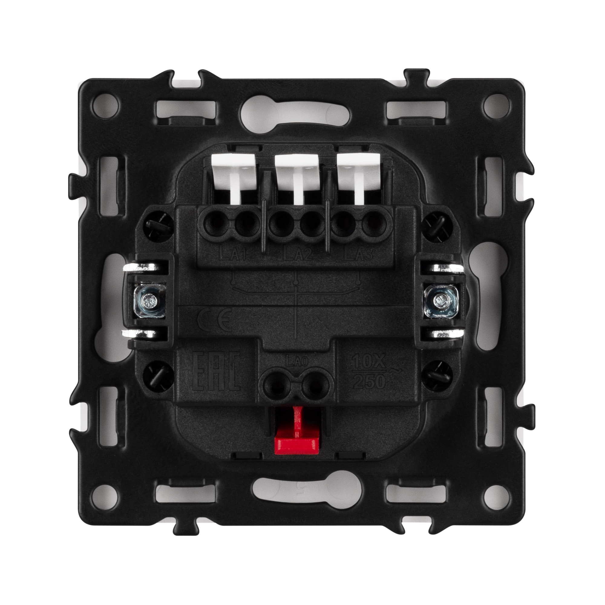 Строгие геометрические линии гармонично сочетаются с функциональностью продуманных механизмов, создавая идеальное решение для дизайн-проектов, где важны как эстетика, так и практичность. Механизм выключателя света совместим с рамками серии NOBE, создает утонченный минималистичный вид. Скрытый тип монтажа позволяет гармонично встроить в интерьер любого современного дизайн-проекта. Видимая часть механизма выполнена из высококачественного пластика цвета белый кварц и имеет Soft-Touch покрытие, что придает изделию приятные тактильные ощущения и стильный внешний вид. Соединение посредством быстрозажимных контактов, позволяет надежно подсоединить механизм выключателя к питающим элементам, минимизируя затраченное время на монтаж. А усиленные распорные лапки двойного захвата надежно фиксируют механизм в установочном подрозетнике круглого сечения диаметром 60мм. Суппорт окрашен в черный матовый цвет под основу механизма и выполнен из металла толщиной 1,5мм, что обеспечивает безопасность и уверенность в установке. На каждой стороне суппорта размещены фиксирующие элементы, позволяющие комбинировать механизмы в системы до 5 шт как горизонтально, так и вертикально.