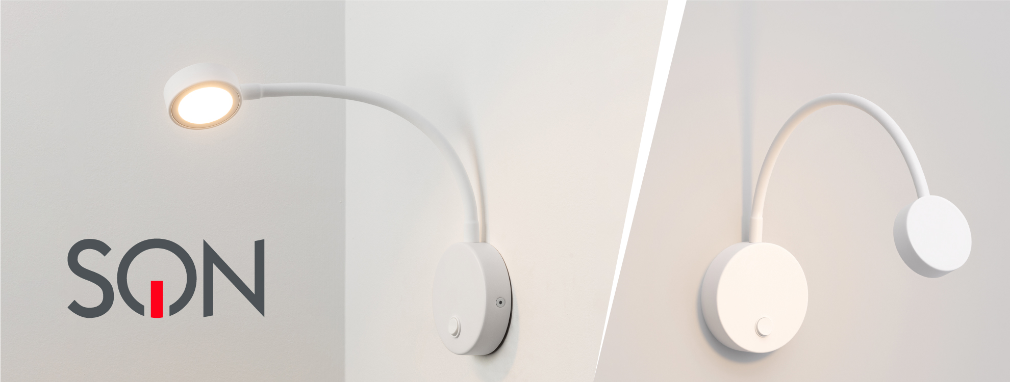 Настенные накладные бра на гибком кронштейне, который можно сгибать и поворачивать в любом направлении, за секунды меняя направление света. Сфера применения светильников SON весьма обширна: создание индивидуальных зон освещенности в жилых и торговых помещениях.