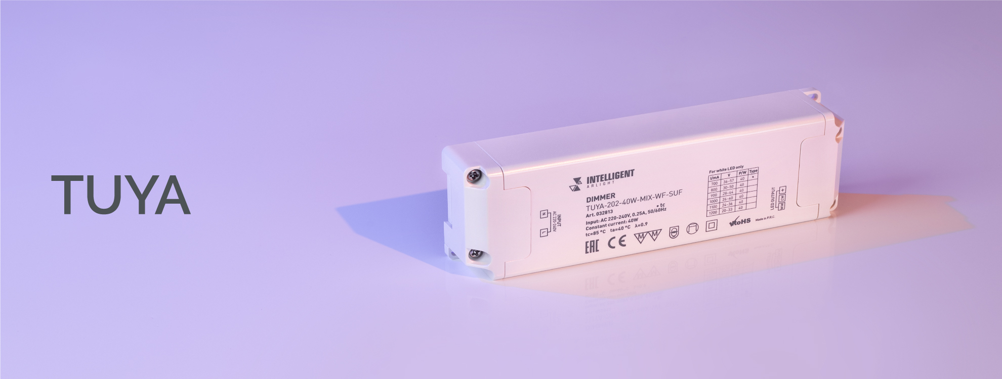 Устройства позволяют управлять источниками света с помощью платформы TUYA и совместимы с голосовыми помощниками. Возможно управление пультами и панелями серии SMART.