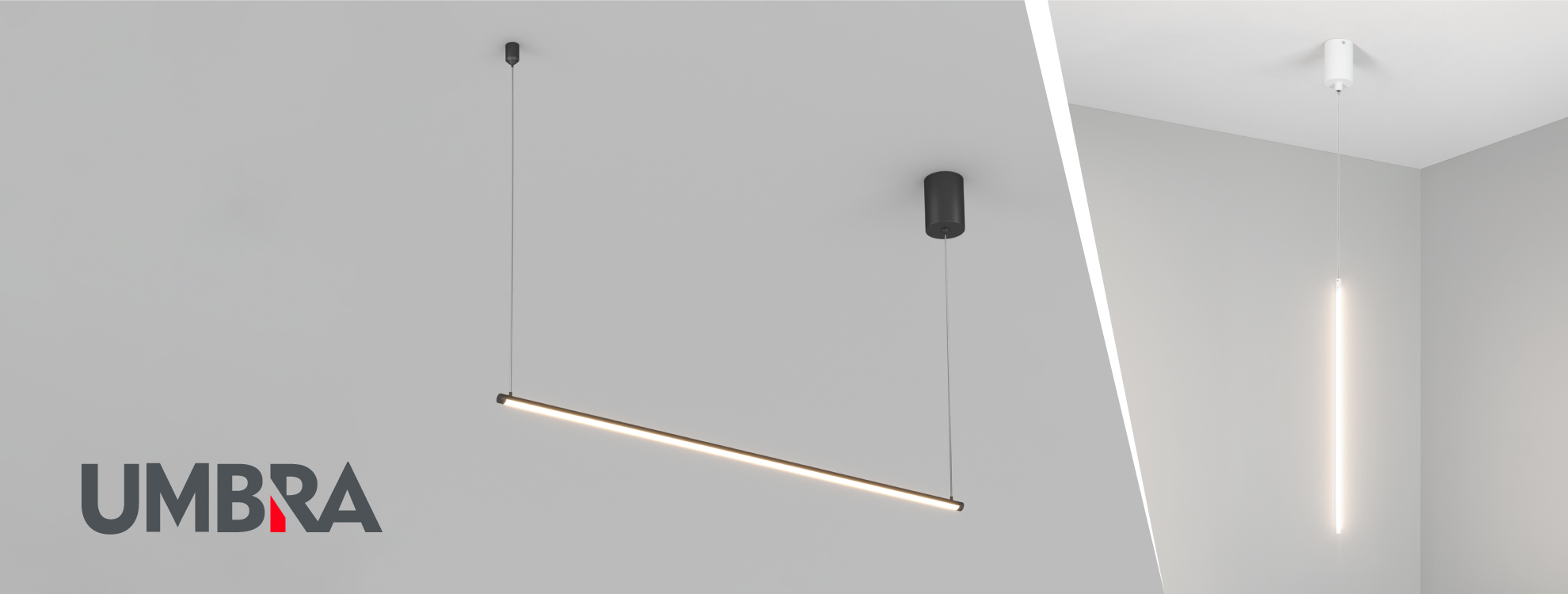 Декоративный подвесной светильник UMBRA c регулируемой длиной подвеса позволит размещать светильники на разной высоте и подстраивать под высоту потолков.