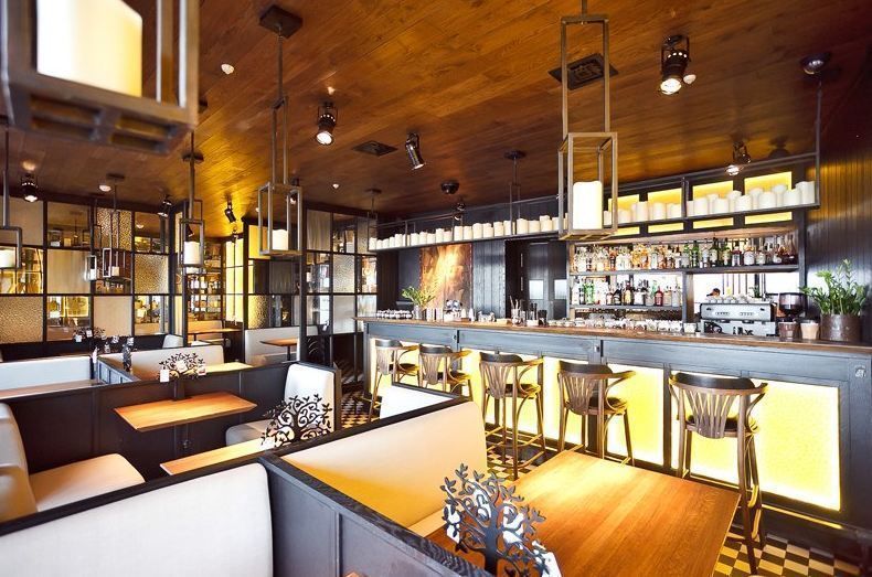 Декоративная и акцентная подсветка бара-ресторана "Solnce" («Солнце») на проспекте Добролюбова в Санкт-Петербурге. В подсветке интерьера использовалось светодиодное оборудование торговой марки arlight®.