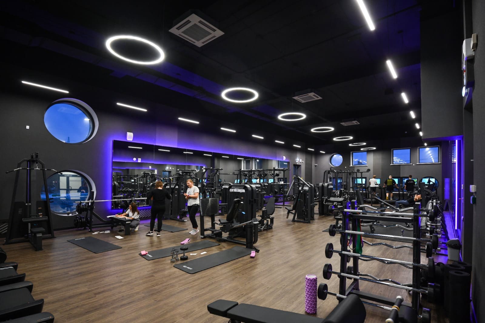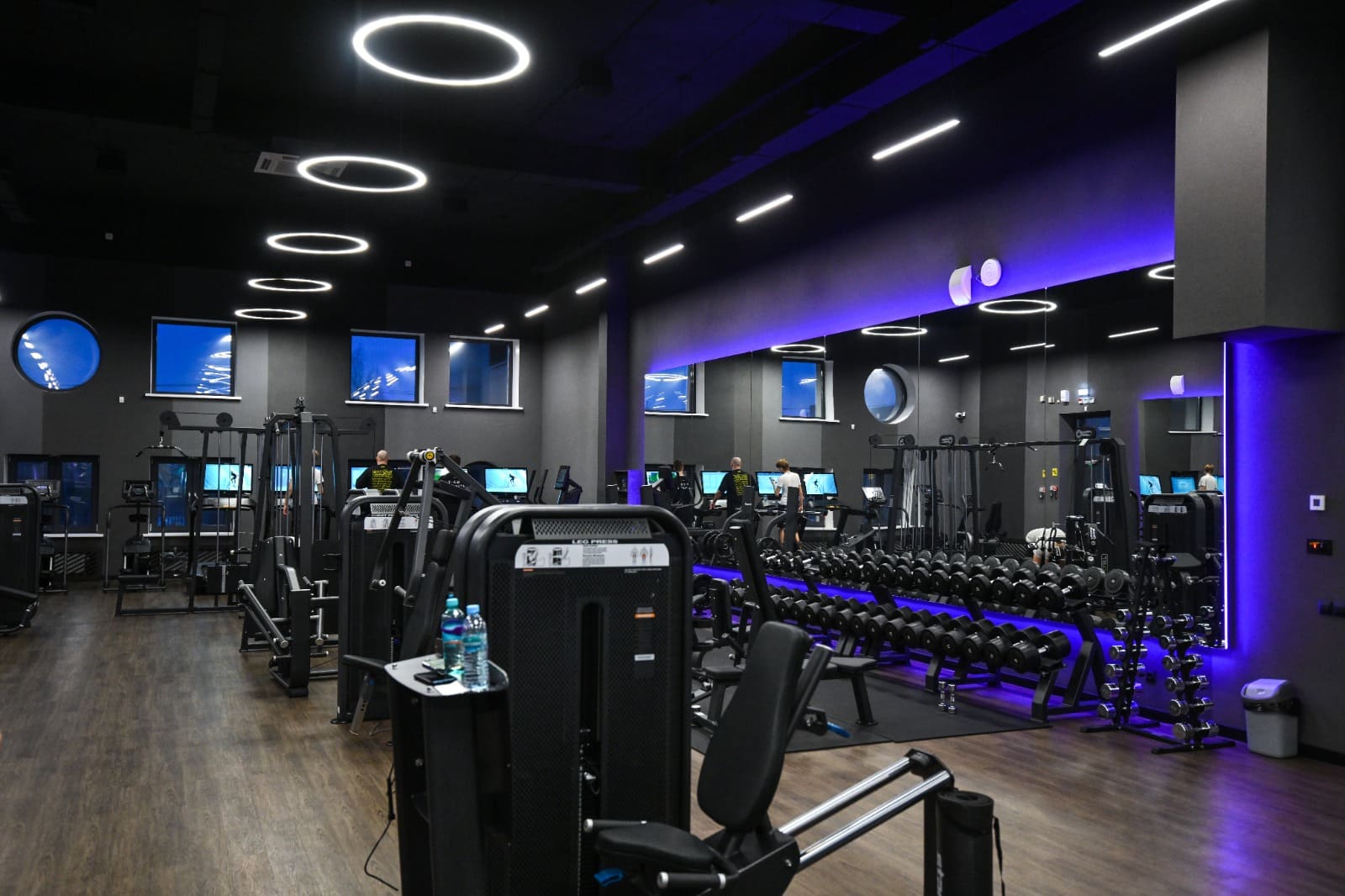 Сердце спорткомплекса — бассейн — освещается множеством светильников, выполненных на основе круглого профиля ROUND. Подвесные светильники со свечением 360° — отличное решение для потолков с открытыми коммуникациями: они не только легко устанавливаются, но и перетягивают внимание на себя. Матовые экраны ROUND образуют приятное рассеянное свечение, которое не создает резких бликов на воде.