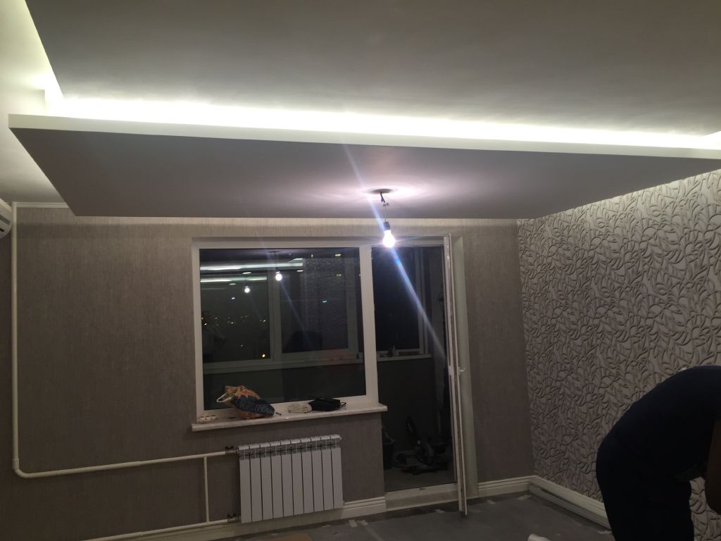 В данной квартире был выполнен проект по созданию линий света и организации подсветки потолков.